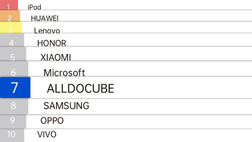 Заняла 7-е место среди лучших брендов планшетов в Китае