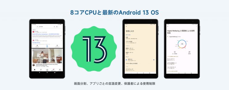 このタブレットは、コンパクトなデザインと優れた性能を兼ね備えています。8インチのスクリーン、オクタコアチップ、最新のAndroid 13 OSを搭載しています。