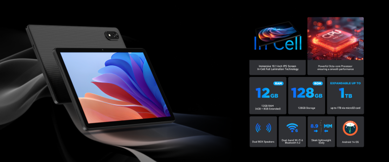 Equipped with an octa-core processor and 12GB of RAM (4GB+8GB), the iPlay 60 S delivers smooth performance for your everyday tasks. Whether you’re multitasking or indulging in gaming sessions, this tablet keeps up with your demands. Plus, with ample 128GB of storage space (expandable up to 1TB via microSD card), you have plenty of room for all your favorite apps, games, and media.