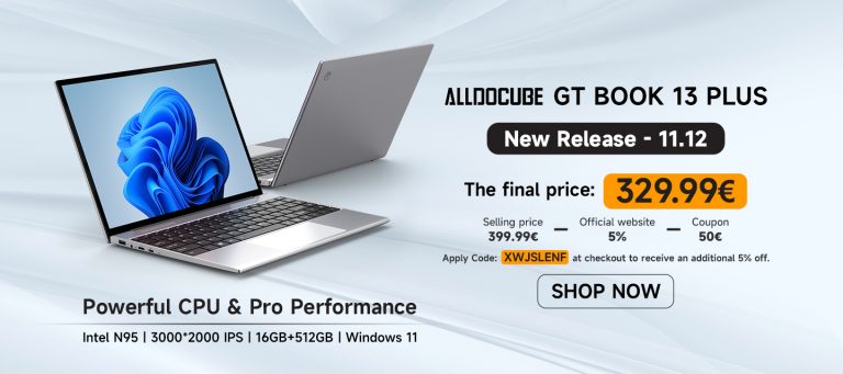 The Alldocube GT Book 13 Plus is currently available at an amazing price of 329.99 EUR. Take advantage of a 50 EUR coupon and use the 5% discount code ‘XWJSLENF’ (valid until 11.12) to secure this exclusive offer. Find it on Amazon France, Amazon Italy, and Amazon Spain. Don’t miss this fantastic deal!