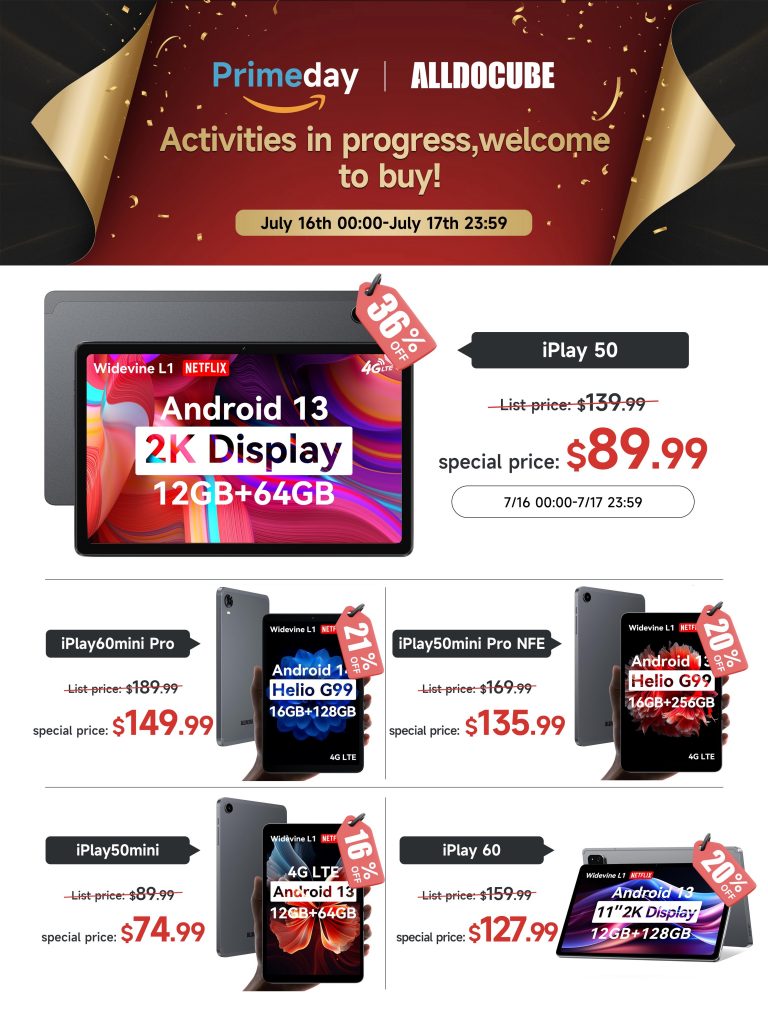 Amazon Prime Day 2024 kicks off today, July 16, at 12:01 a.m. PDT and runs through July 17. It’s the biggest shopping event of the year, and you can score amazing deals on Alldocube gadgets! Here are the top offers: