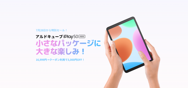 7月27日から、iPlay 50 miniはAmazon.jpにて初発売する予定です!通常価格16,999円のアルドタブレット iPlay 50 miniは、クーポンを利用して3,000円OFFのお得なキャンペーンが間もなく開催されます!これは手の...