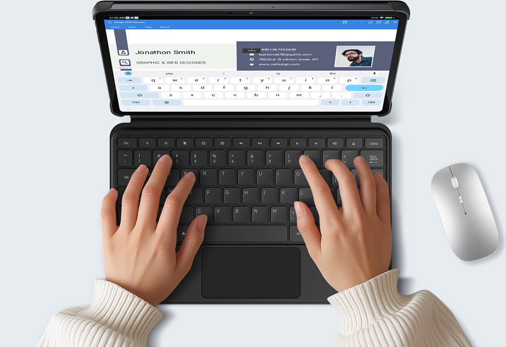 Compatible accessories further enhance the experience, allowing you to switch between tablet and laptop modes effortlessly for comfortable, efficient work.
