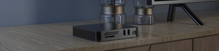 SuperBox with a thickness only 2.5 cm, a width 12 cm, and weight less than 350 g, can be perfectly placed in the meeting room, or can be your on-the-go entertainment partner. It does not cover a lot of desk space, can fit into your pocket, which makes it super convenient.