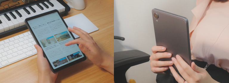 重さわずか323g、厚さ7.9mmの薄型ボディは、どこにでも持ち運びやすく、快適に使用できます。メタル素材のボディは手にしっくり馴染み、長時間の使用でも疲れにくい設計です。通勤・通学時や旅行先、リラックスタイムに最適なコンパクトなタブレットです。
