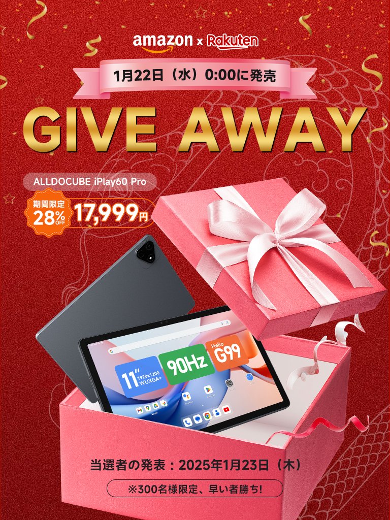 **Alldocube Japan公式X(旧Twitter)**にて、フォロー&リツイートで「iPlay60 Pro スレートグレー版」を1名様にプレゼント!