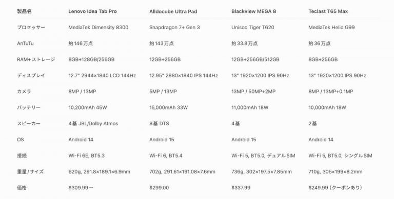 しかし実際に選ぼうとすると「性能は十分か?」「価格に見合っているか?」と迷う方も多いはず。そこで今回は人気モデルを比較しながら、Alldocube Ultra Pad がなぜ2025年の“ベストチョイス”になり得るのかをご紹介します。