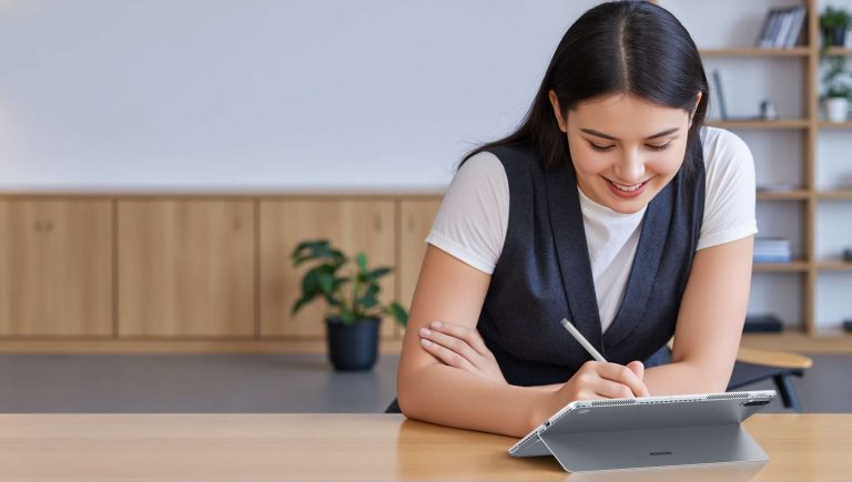 磁気式キーボードと4096レベル対応のスタイラスペン(別売)に対応。文章作成や図面作成、手書きメモもスムーズに。USB-CやUSB-Aポートも揃い、外部ディスプレイ接続やHUB拡張も簡単。ビジネスでもクリエイティブ作業でも柔軟に対応できます。
