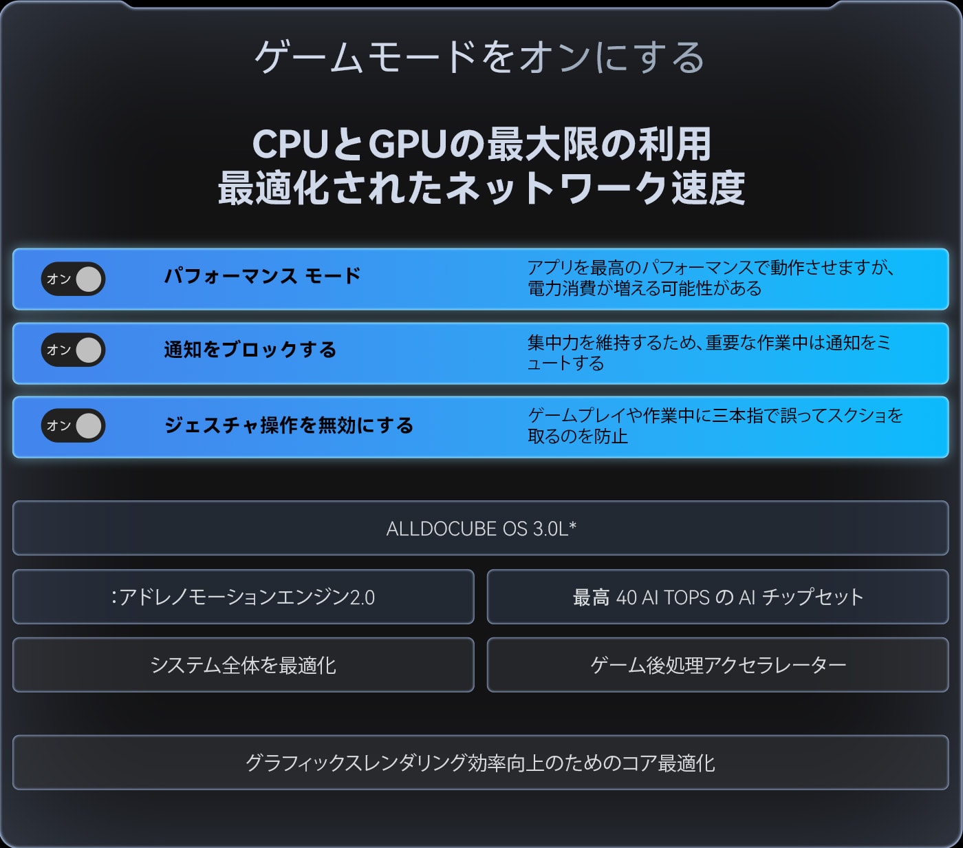 どんな過酷なゲームも、圧倒的なパフォーマンス、スピード、そしてスムーズな操作性で制覇します。