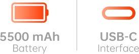 5500 mAh battery, USB-C interface