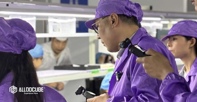 투어는 광저우 난사에 위치한 ALLDOCUBE의 최신 공장에서 시작되었습니다. 공장장인 Mr. Zhou의 따뜻한 환영을 받으며, 방문단은 SMT 부품 실장부터 최종 조립까지 태블릿이 탄생하는 전 과정을 가까이에서 지켜보았습니다. 현장 곳곳에서 카메라 셔터 소리가 끊이지 않았습니다.